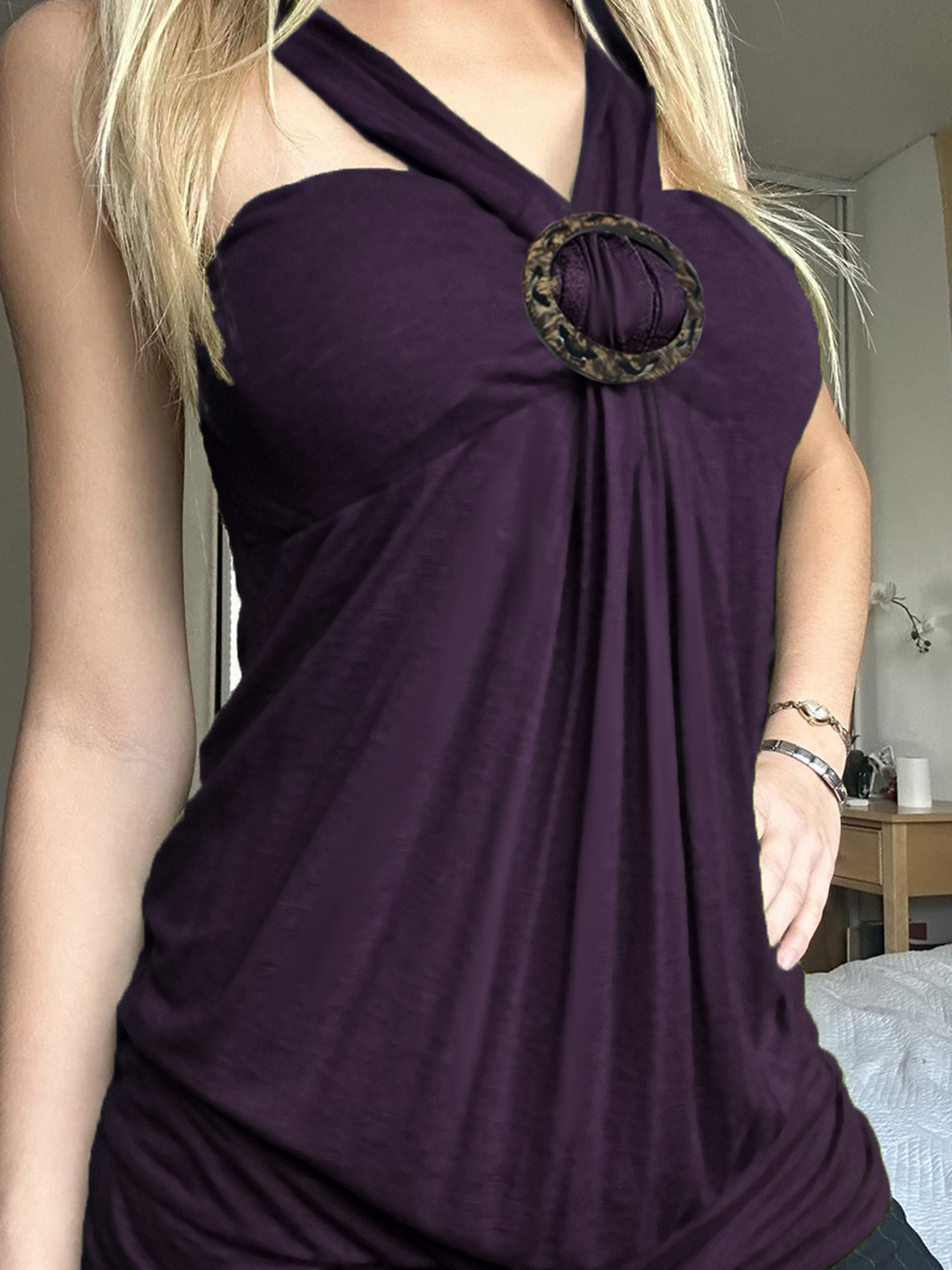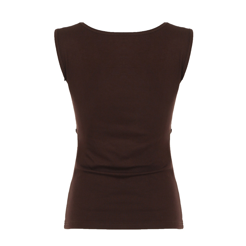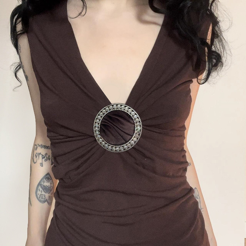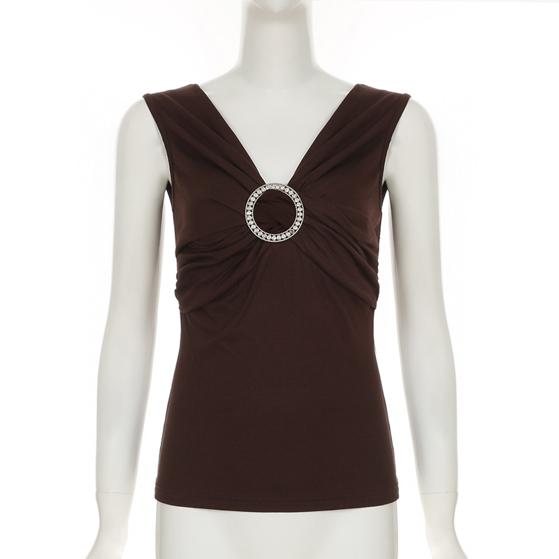 Mature and sophisticated deep V-neck vest with rhinestone ring embellishments