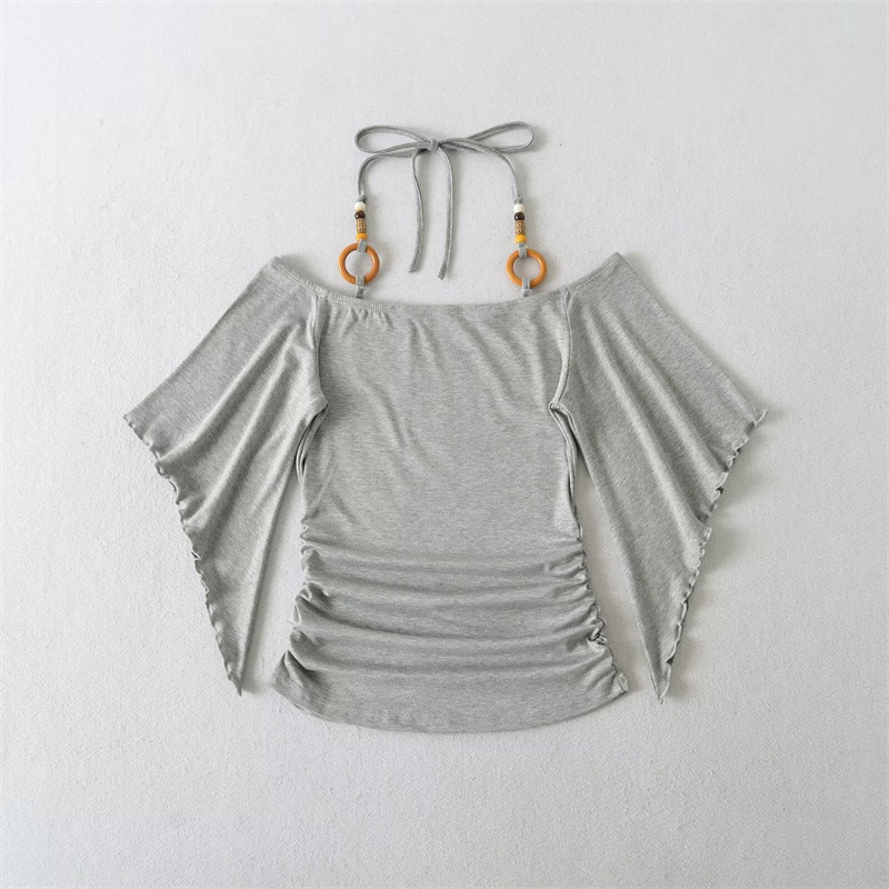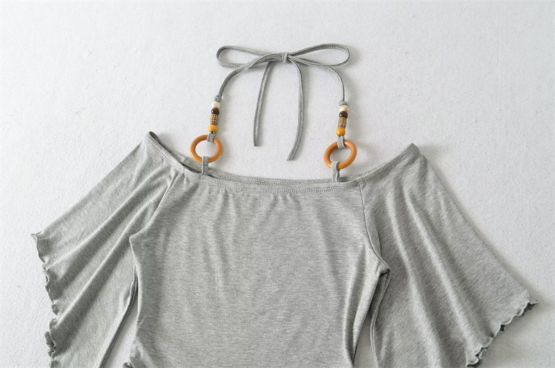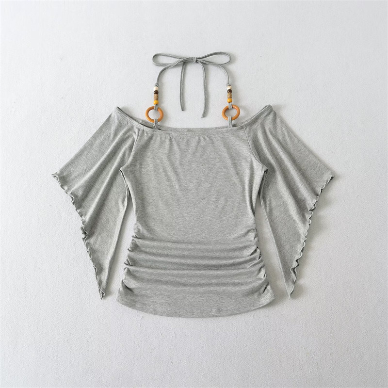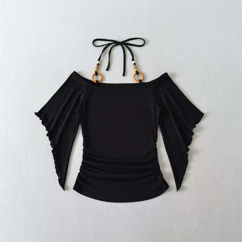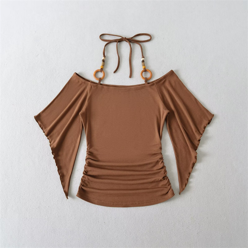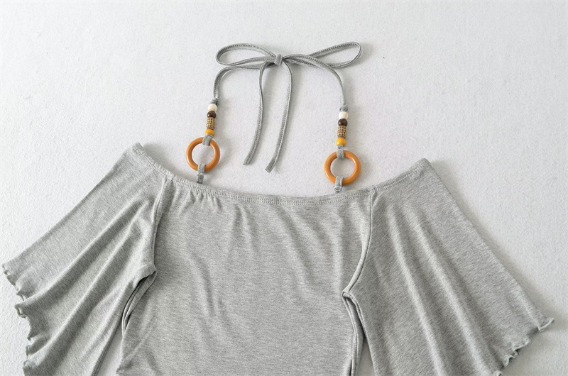 Women's Retro Off-the-Shoulder Beaded Halter Neck Top